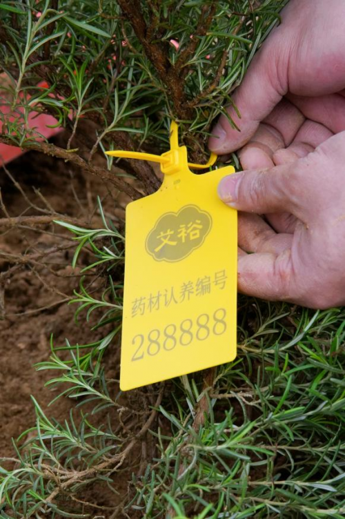 致辞结束后,启种仪式进入核心环节。员工们分组领取幼苗、铁锹、锄头、水桶和手套,走进划分好的种植区域。各组认领了自己的“责任田”,有序开展挖坑、栽苗、培土、浇水等一系列种植操作。在本次活动中,艾裕特别启动了“草本认养人”计划,1000株迷迭香幼苗“站”在那片新翻的土地里,艾裕员工和部分客户代表走上前,将刻有专属编号的认养牌系在枝头,认养确认后,艾裕也将为每一位认养人颁发专属的“药材认养纪念证书”。