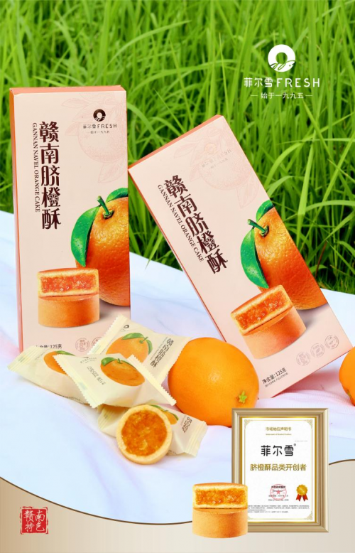 “我们希望,当人们提到赣州,不仅知道这里有最好吃的脐橙,还知道有一块值得带走的脐橙酥。”菲尔雪总经理曾森表示,“未来,我们将继续深耕脐橙酥这一品类,在产品创新和品牌建设上持续发力,让这份来自‘世界橙乡’的酥香典藏,成为更多人心中的赣南记忆。”